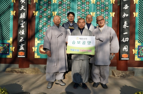 빛고을나눔나무 승보공양은 어려운 여건에 처한 스님들에게 의료비 지원사업을 지난 2017년부터 진행하고 있으며, 이날 지궁스님에게는 매월 50만원씩 1년간 지원된다.