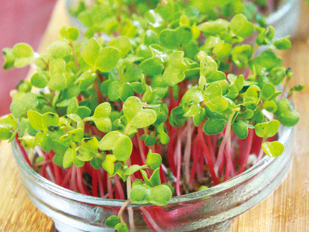 집이 지하라 혹은 북향이라 일조량이 적어 식물을 키울 엄두가 나지 않았던 사람도 재배 가능한 채소가 있다. 무순, 배추순 등 새싹채소다. 접시나 컵에 거즈를 깔고 싹이 나기 전까지 어두운색 천으로 덮어준다. 단, 씨앗이 겹치지 않도록 평평하게 펼쳐준다. 물은 2~3시간에 한 번씩 분무기로 주고 추운 곳 보다는 따뜻한 곳이 좋다. 4일 후 싹이 나오면 천을 걷어주는데 6일이면 다란다.