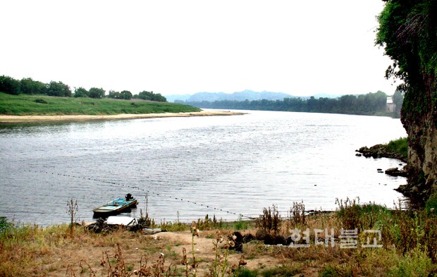 화석정 기둥에 기대서서 유유히 휘도는 임진강을 내려다봅니다. 햇살이 튕겨 오르는 강물 그 안쪽에는 푸른 녹음이 담겨 있습니다. 강 건너 평지에서는 군인들이 각종 포를 설치해 놓고 훈련을 하고 있습니다.