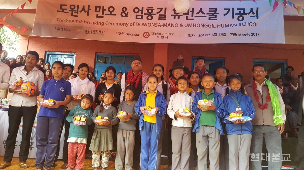 [현대불교=노덕현 기자] 엄홍길휴먼재단(이사장 이재후)은 3월 29일 네팔 수도 카트만두에서 동남쪽으로 약 40km정도 떨어져 있는 둘리켈에서 엄홍길휴먼재단 엄홍길 상임이사, 홍옥선 사무처장, 현지 학교장, 학생, 마을주민 200여명이 참석한 가운데 제14차 둘리켈 휴먼스쿨 건립을 위한 기공식을 가졌다.