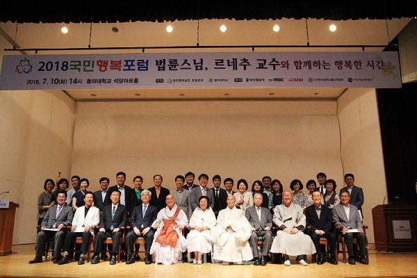 심산 스님은 개회사에서 “과거 우리는 경제가 최우선 화두였으나 세월이 흘러 개인의 자유와 민주주의로 관심사가 옮겨갔다”며 “하지만 이제 행복이 삶의 화두다. 국민행복포럼을 통해 진정한 행복이 무엇인지 삶의 실천과제를 찾고 이야기하는 계기가 되길 바란다”고 말했다.