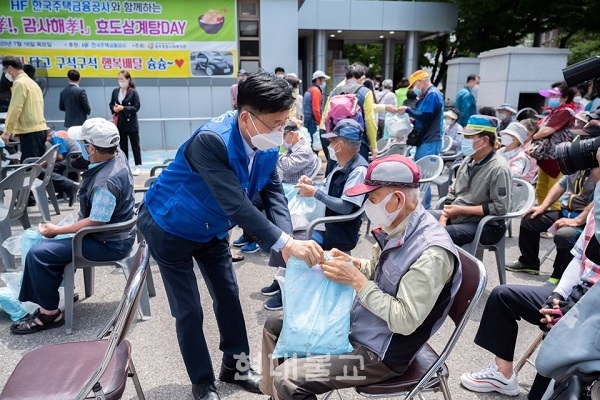 한국주택금융공사와 용호종합사회복지관이 초복을 맞아 어르신들의 건강을 기원하며 ‘사랑해孝! 감사해孝!’효도 삼계탕 나눔을 진행했다.