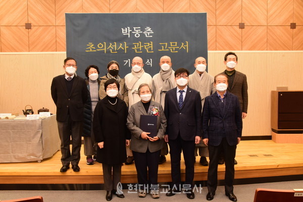 국립광주박물관은 1월 7일 관내 소강당에서 ‘박동춘 소장 초의선사 관련 유물 기증식’을 진행했다. 이날 기증식에는 박동춘 소장과 이수미 광주박물관장 외에도 내빈으로 조계종 교육원장 진우 스님과 전 송광사 주지 현고 스님, 태고종 광주전남종무원장 월인 스님, 허상만 순천대 석좌교수, 김행 전 청와대 대변인, 조성택 고려대 교수가 참석해 기증 취지를 치하했다.
