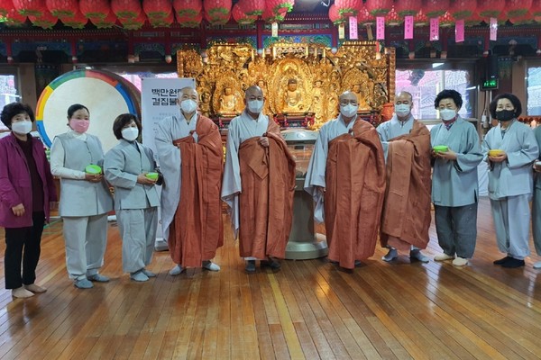 서울 강북권 대표기도도량인 도선사(주지 도서)에서도 4월 3일 신도들이 기도와 함께 모은 보시금을 발우저금통에 담아 전달하는 행사가 진행됐다.