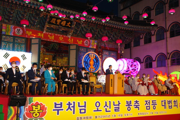 법요식은 국민의례, 반야심경 봉독, 관불의식과 봉행사, 점등, 축가 순으로 진행됐다.