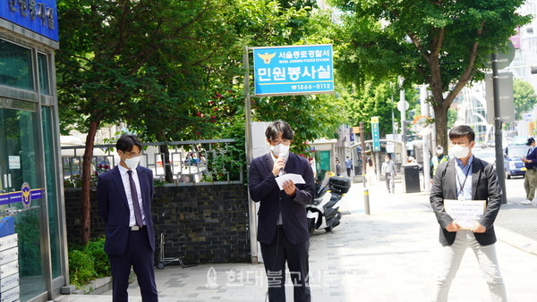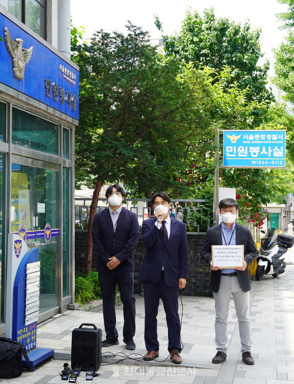 법률대리인 김봉석 변호사(법률사무소 금상 대표변호사)는 “피고소인들은 5월 19일 오전 10시~11시 피켓팅과 확성기를 통한 고성방가로 형법 158조에 정한 예불 및 설교를 방해하고 위력으로 종교에 관한 업무를 방해했다”며 “특히 우정국로 일대가 집회금지구역임에도 집회신고를 하지 않거나 일부 집회신고 후 경찰의 집회해산 명령 및 집회금지 통보에도 불응하는 등 집회 및 시위에 관한 법률도 위반했다”고 설명했다.