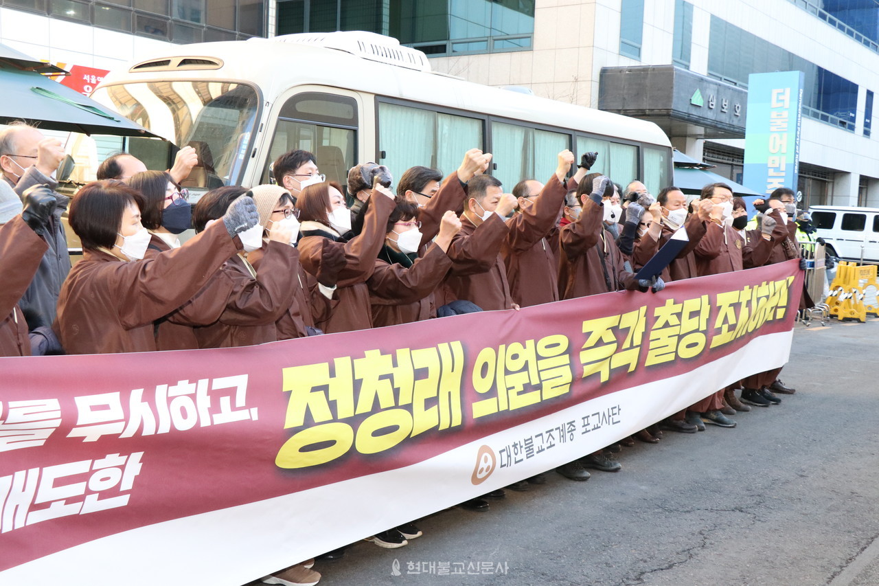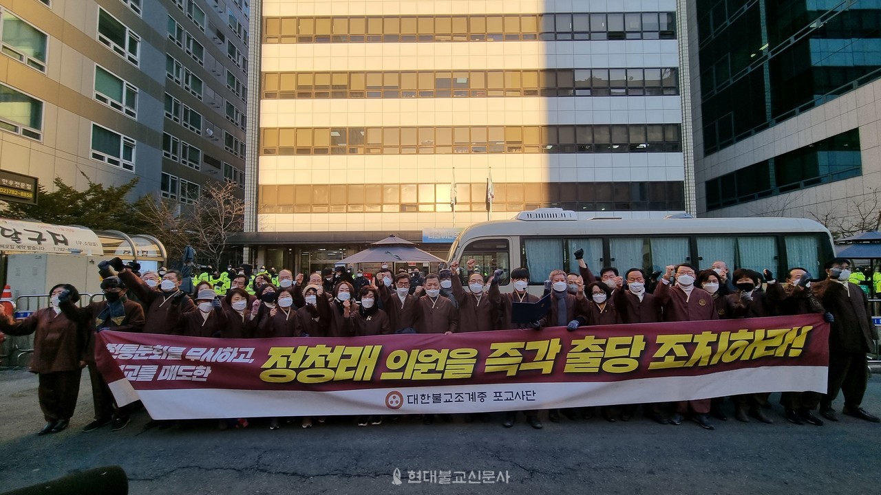 이들은 이날 정청래 의원의 즉각 출당 조치를 민주당에 촉구하며 “정청래 의원은 문화체육관광위 소속 위원을 3선에 걸쳐 할 만큼 한국문화에 대한 식견이 상당함에도 불구하고 한국불교를 폄훼하고 사실을 왜곡하며 1월 4일 오늘에 이르기까지 진정성 있는 사과가 없다”고 규탄했다.