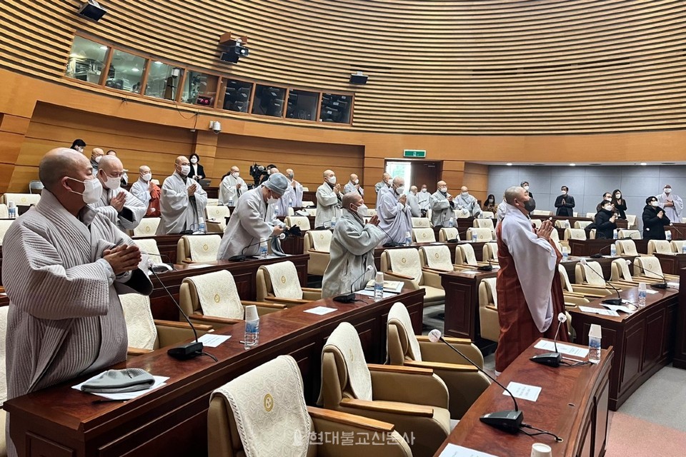 이날 회의에 앞서 총무원장 원행 스님은 “조선조 500년 동안의 탄압에도 버텨온 한국불교를 더 이상 폄훼하지 못하도록 힘을 모아야한다”며 “전 종도가 불교를 위해 위법망구(爲法忘軀)의 마음으로 임해달라”고 당부했다.
