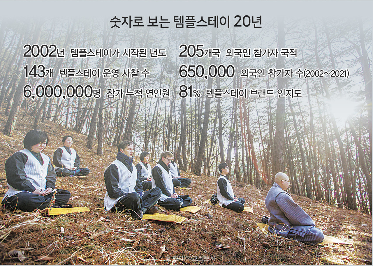 한일 공동 월드컵 개최를 계기로 시작된 템플스테이는 꾸준한 성장세를 보여줬다. 2002년 33개 사찰에서 시작한 템플스테이는 현재 143개의 사찰에서 운영되고 있다. 2002~2005년 초반에는 연간 참가자수가 10만 명 수준이였지만 2015년 40만 명을 돌파했고, 코로나19 유행 직전인 2019년에는 연간 참가자 53만 명을 돌파했다. 누적 참가자는 205개국 600만 명에 달한다. 시설도 남녀만 구분해 대방에서 단체 숙소를 사용하던 시절을 지나 이제는 개별 숙소와 화장실을 구비한 사찰들이 많이 증가했다.