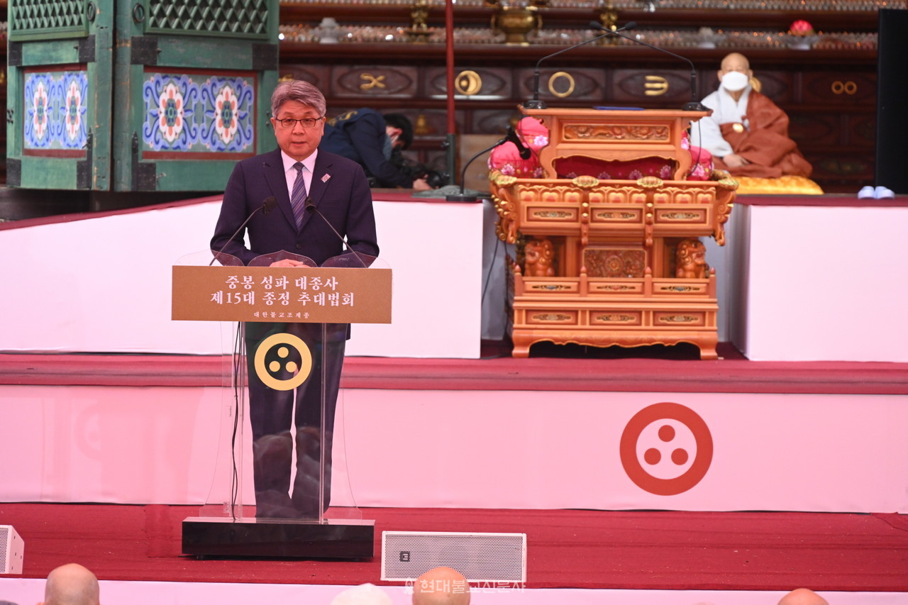 오늘 우리 사부대중은 하늘이 열리고 땅이 일어나 함께 춤추는 기쁜 법석에 함께 하고 있습니다. 대한불교조계종 제15대 종정예하 중봉 성파 대종사님을 모시는 즐거운 축제의 장입니다.