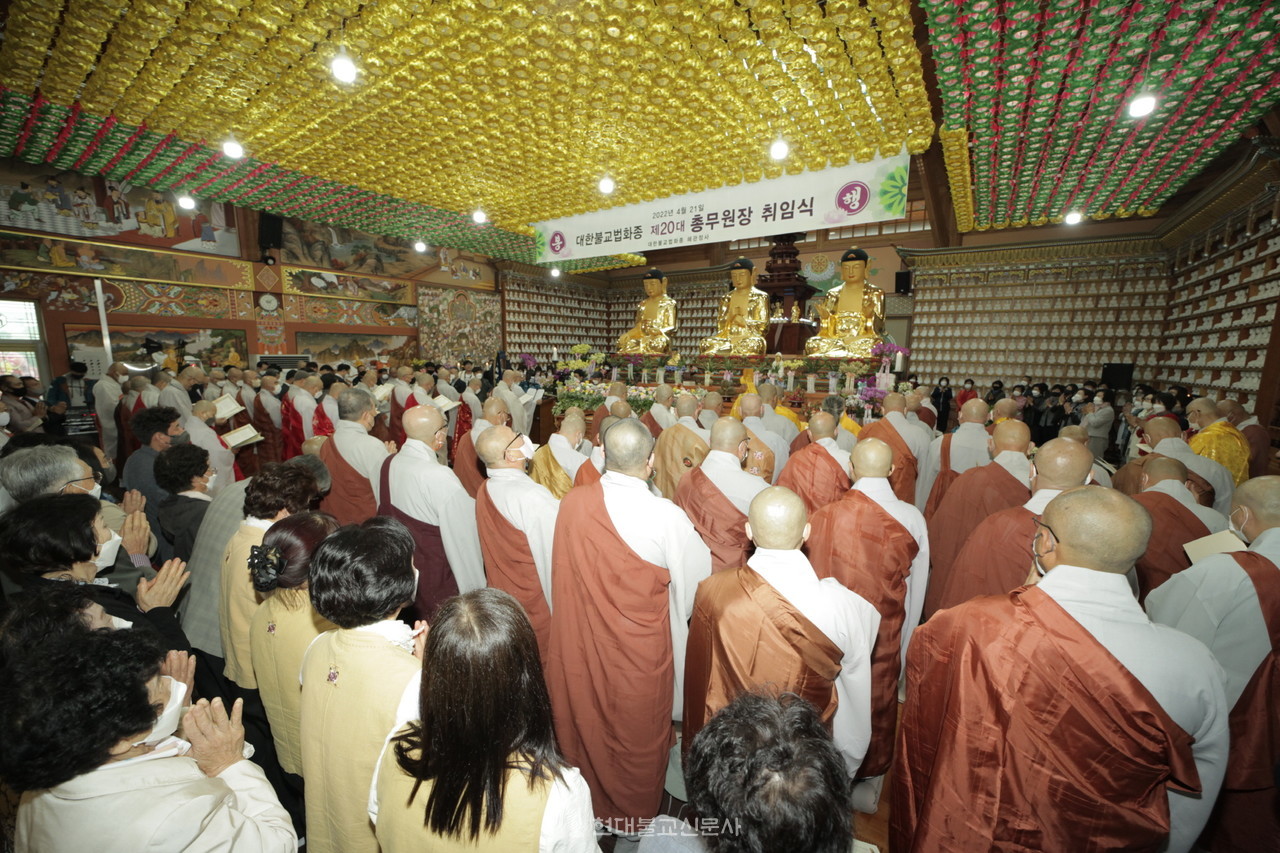 “법화종 제20대 총무원 집행부는 ‘참회’와 ‘승가정신 회복’을 통한 변혁과 혁신을 기조로 소통과 원융살림에 최선의 노력을 다하겠습니다. 종단변혁, 이제부터 시작입니다.”