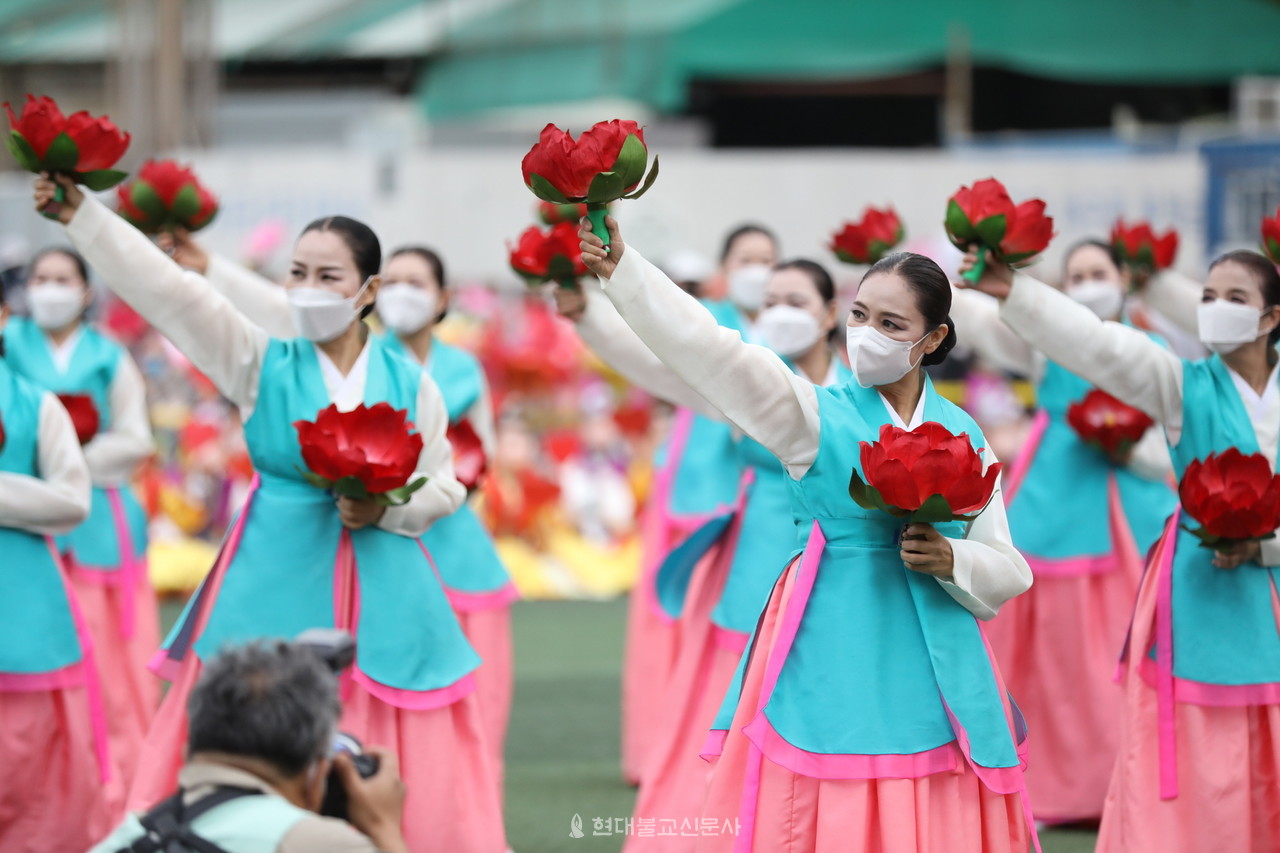 ‘다시 희망이 꽃피는 일상으로’를 주제로 펼쳐진 올해 연등회는 코로나 장기화로 지친 국민들을 위로하고 다시 일상을 회복하는 희망과 치유의 법석으로 마련됐다. 연등회의 시작은 봉축연희단의 축하무대를 중심으로 한 어울림마당으로 펼쳐졌다.