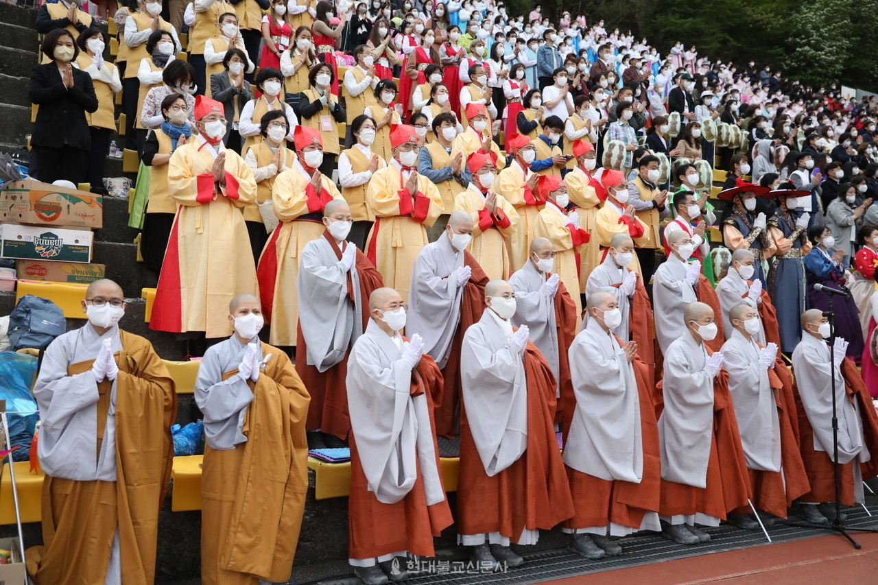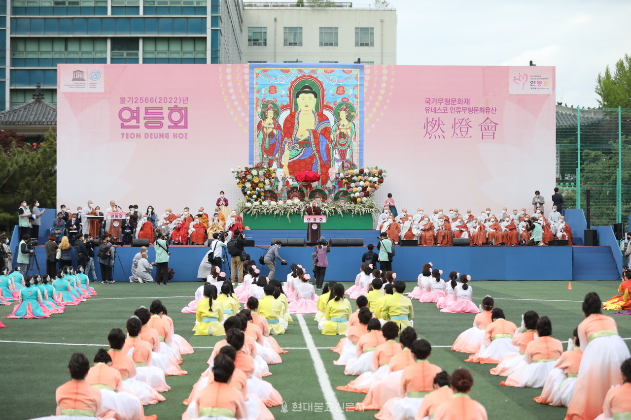 불기 2566년 부처님오신날을 찬탄하는 연등회가 3년만에 화려한 막을 올렸다. 유네스코 인류무형문화유산이기도 한 연등회는 매년 부처님오신날을 상징하는 세계적인 축제로 운영돼 왔지만, 코로나19 사태 이후 취소되거나 대폭 축소돼 아쉬움이 적지 않았다. 이에 4월 30일 오후 4시 30분 동국대 대운동장에서 3년 만에 다시 펼쳐진 축제현장에는 수많은 불자들이 운집해 부처님 오심을 찬탄했다.
