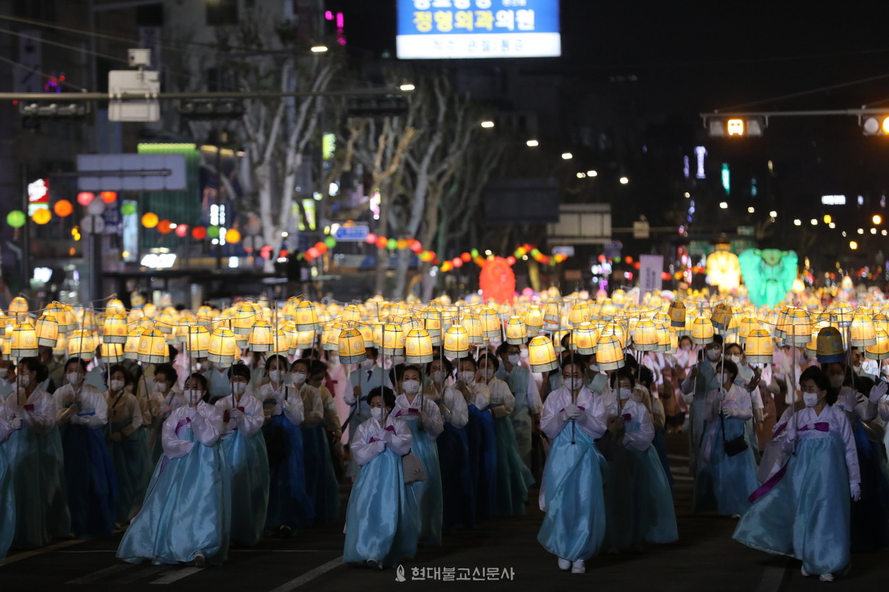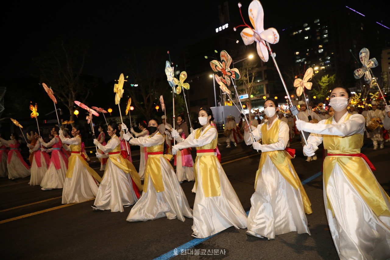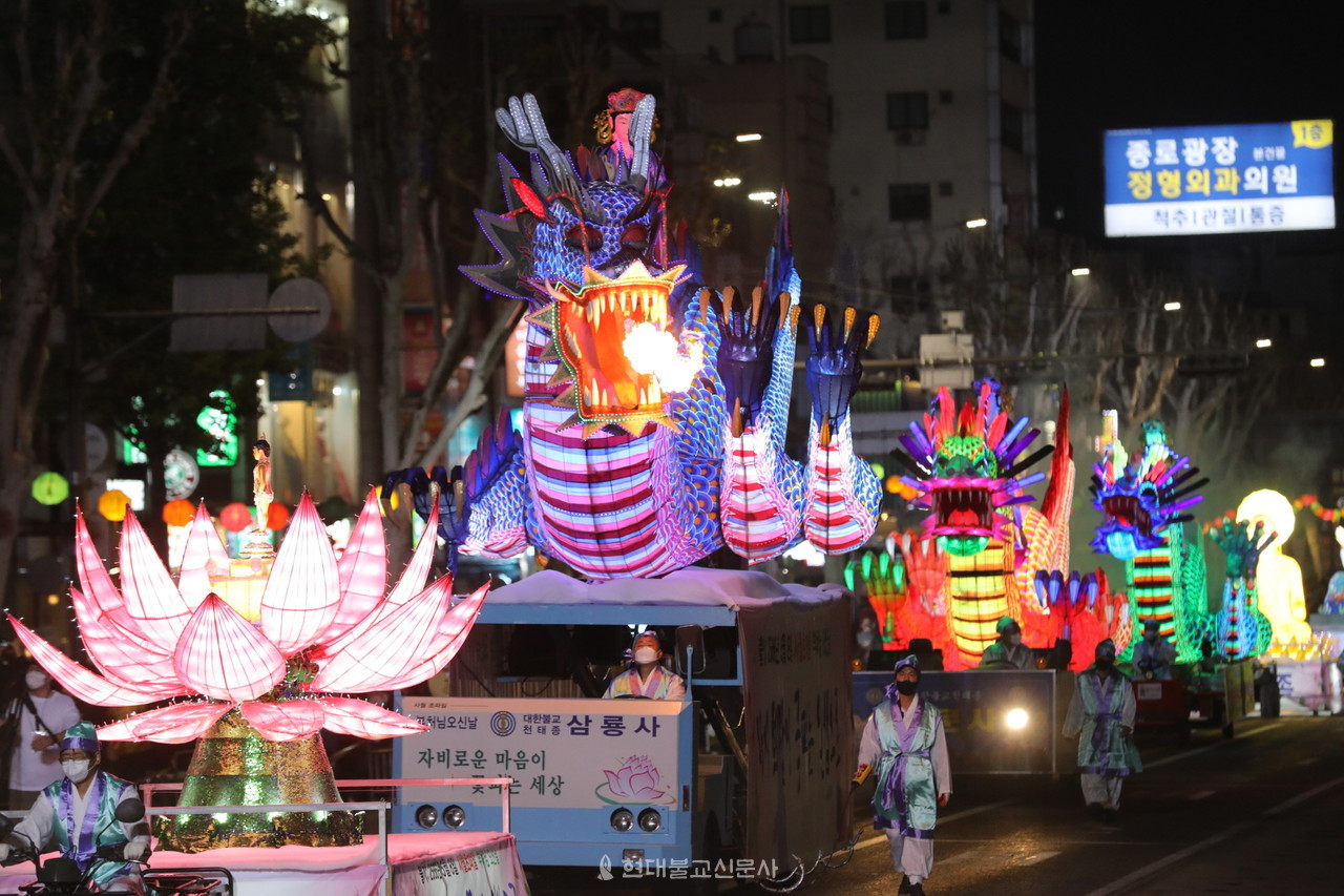 서울 밤하늘을 수놓은 연등의 물결은 ‘다시 희망이 꽃피는 일상으로’ 향하는 희망과 치유의 여정이었다. 연등행렬을 위해 종로 일대 도로가 전면통제된 것은 코로나 사태 이후 3년만의 일이다. 저마다 행렬등을 손에 들고 각양각생의 장엄등 행렬을 뒤따르는 참가자들의 얼굴은 환희로 빛났고 이를 반기는 시민들의 환호성은 다시 돌아온 일상을 실감케 했다.