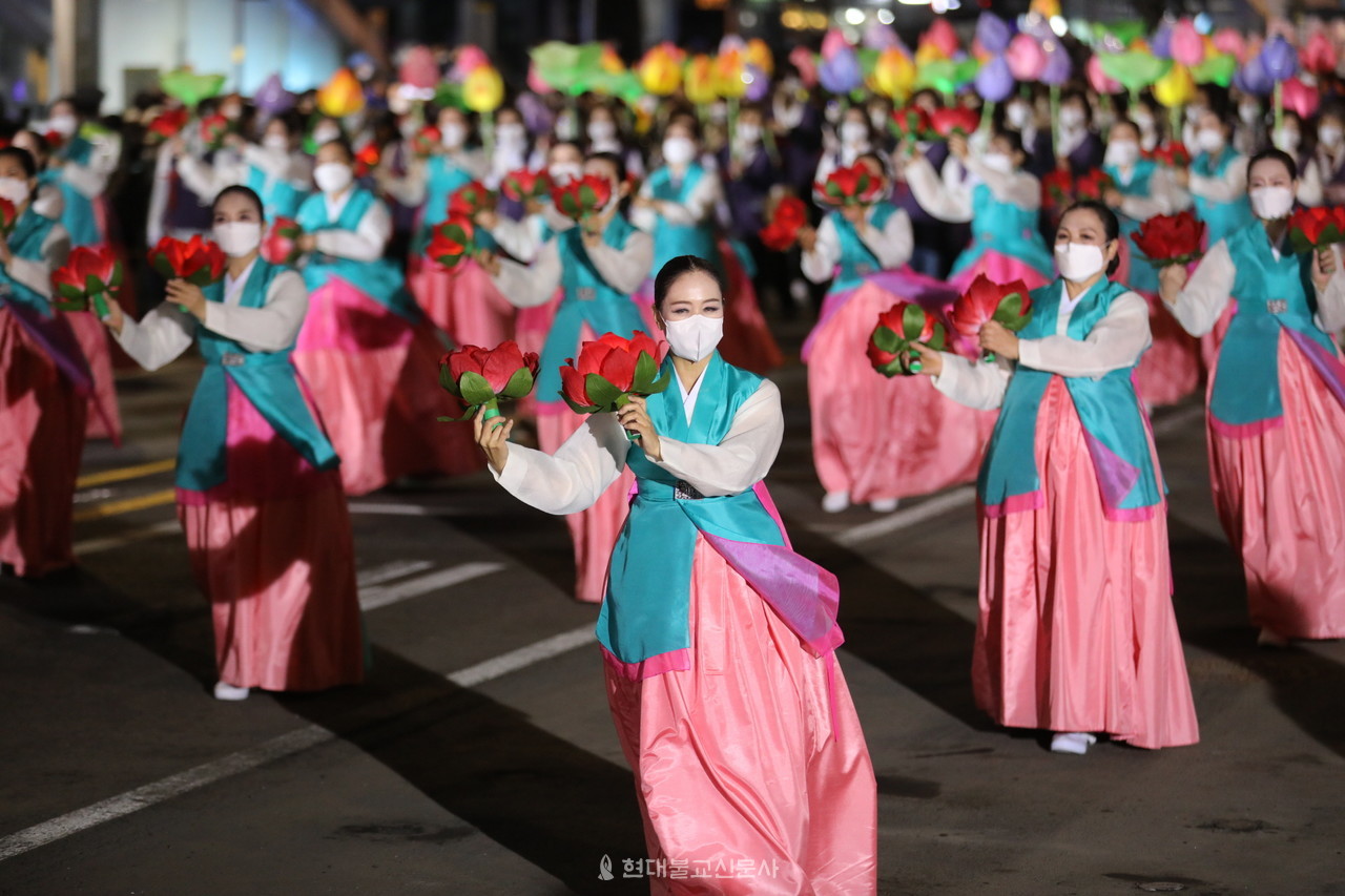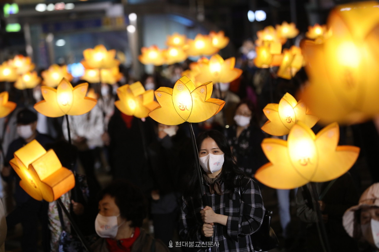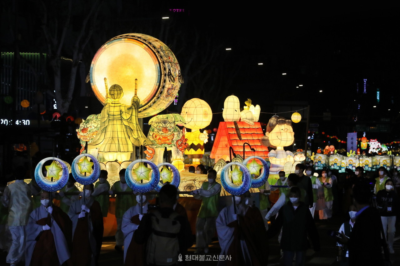 서울 밤하늘을 수놓은 연등의 물결은 ‘다시 희망이 꽃피는 일상으로’ 향하는 희망과 치유의 여정이었다. 연등행렬을 위해 종로 일대 도로가 전면통제된 것은 코로나 사태 이후 3년만의 일이다. 저마다 행렬등을 손에 들고 각양각생의 장엄등 행렬을 뒤따르는 참가자들의 얼굴은 환희로 빛났고 이를 반기는 시민들의 환호성은 다시 돌아온 일상을 실감케 했다.