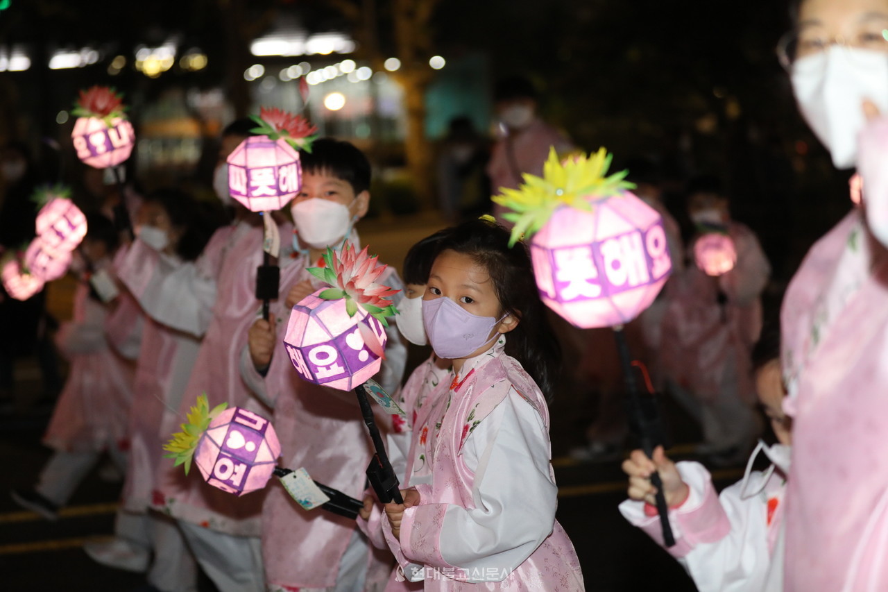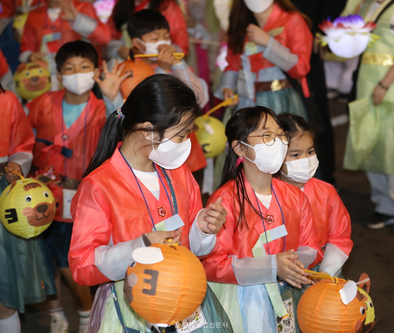 발우등과 코끼리 등을 들고 석가모니정근을 하는 중앙승가대학교와 석림회 스님들의 뒤를 이어 등장한 어린이‧청소년들은 시민들의 관심을 한몸에 받았다. 동자‧종녀 장엄등 뒤로 파라미타청소년연합회와 조계종립 은석초‧부여중‧부고 등 종립학교 학생과 한국스카우트연맹 어린이들이 태극초롱등과 별등, 오색팔모등을 들고 환한 웃음을 보이면, 거리에 앉아 행렬을 기다리던 시민들의 환호에 거리에 활기를 더했다.