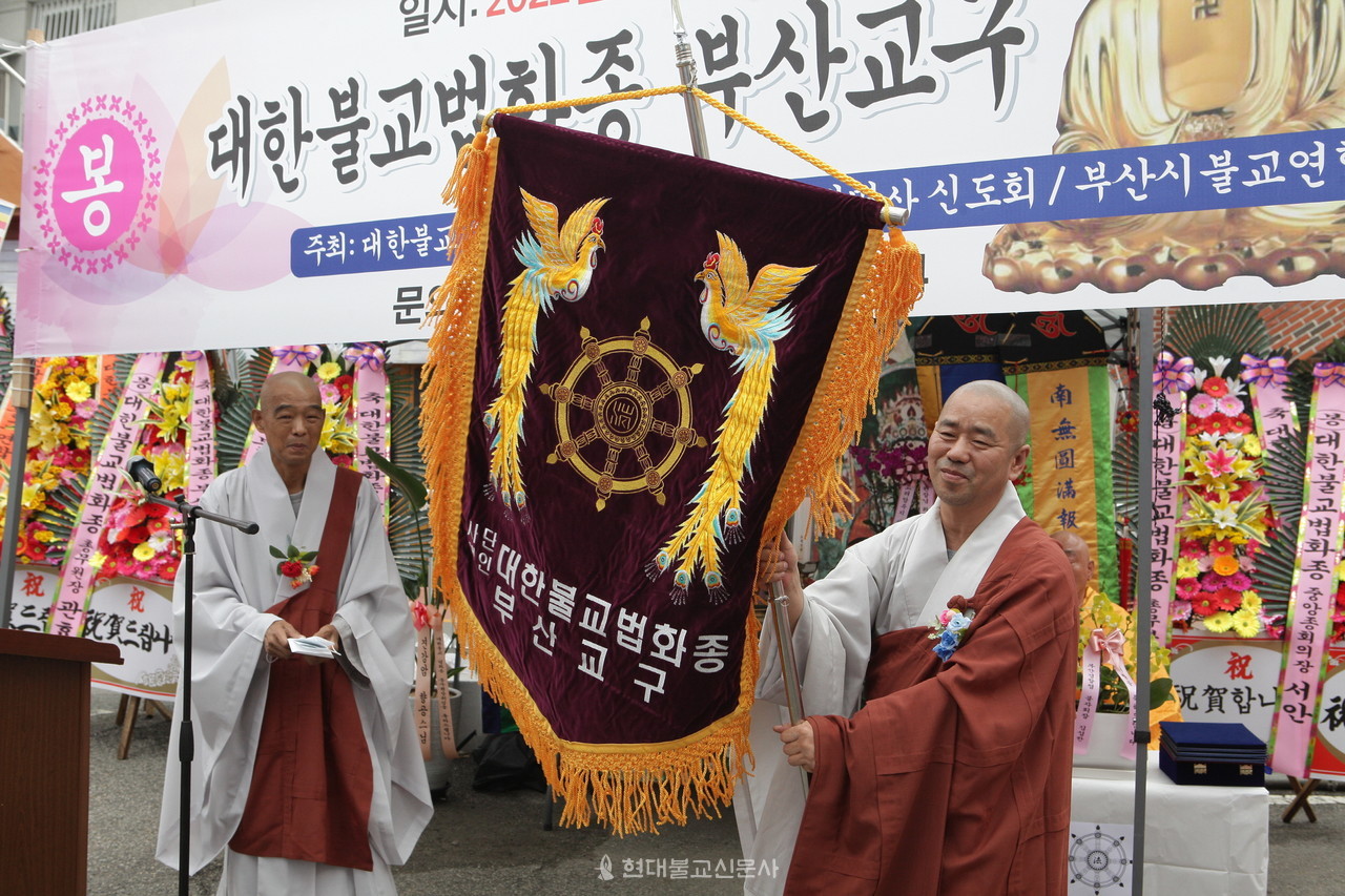 법화종 부산교구는 10월 6일 광명사 앞에서 ‘대한불교 법화종 부산교구 종무원장 이·취임식’을 개최했다.