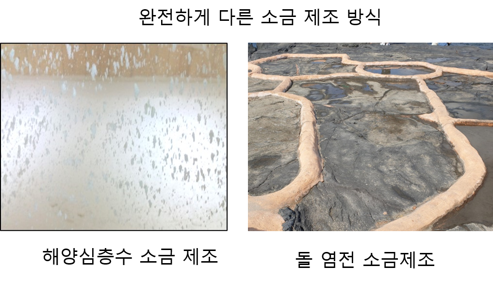 중국의 염전은 깊고, 한국의 염전은 얕다. 티베트의 염전은 물을 다 말린 후 소금을 수확하지만, 한국의 염전은 물이 흥건한 상태에서 소금을 수확한다. 라오스의 산중에서 짠물을 가지고 솥에 바로 넣어서 끓여 소금을 만들지만, 한국의 바닷물은 그렇게 할 수가 없다.