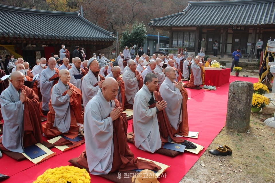 원로의장 보명 스님도 이날 법석에 대해 남다른 소회를 전했다. 스님은 “1년 전만해도 안정사에서 오늘과 같은 의미있는 법석이 열릴 수 있을 것이라고는 상상도 하지 못했기에 더욱 감개무량하다. 집행부의 노력이 없었다면 법계품서식은 물론, 영원히 안정사에서 종단행사를 하지 못할지도 모르는 위기의 순간들이 있었다”며 “오늘 법계를 받은 스님들은 인천의 스승으로, 수행과 포교에 전념할 뿐 아니라 종단 화합과 원융살림을 열어가기 위한 법화행자로서 역할을 다해달라”고 당부했다.