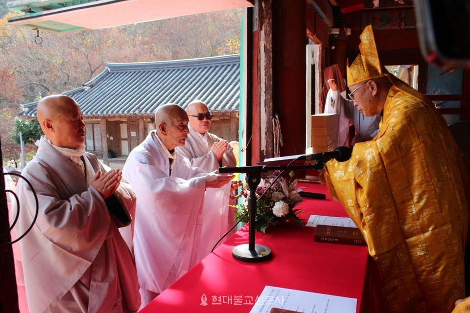 총무원장 관효 스님은 봉행사에 앞서 안정사 주지 원담 스님의 노고를 치하하며 이날 법석의 의미를 전했다. 스님은 “오늘 법석은 안정사가 우리 종단의 총본산임을 종도 모두에게 천명하는 동시에, 앞으로 총본산으로서 그 역할을 회복하고 위상을 제고하는 출발점이 될 것”이라며 “내년에는 종단 차원이 통일가사불사를 통해 종단 정체성을 되찾고 본래 면목으로 돌아가기 위한 노력을 현실화하고자 한다. 그동안 어수선했던 종단 모습을 일신하고 제도개선을 위해 매진할 것”이라고 약속했다.