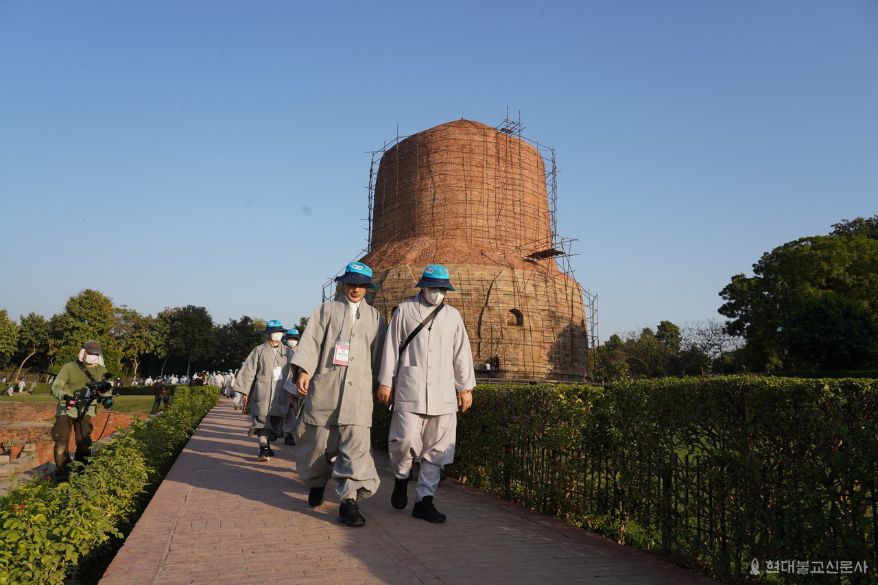 숙소를 배정받은 순례단은 부처님이 다섯 수행자를 만난 자리 ‘차우칸디 스투파’(영불탑)을 참배하고 바로 이어 부처님께서 처음으로 진리의 수레바퀴를 굴린 녹야원을 참배했다.