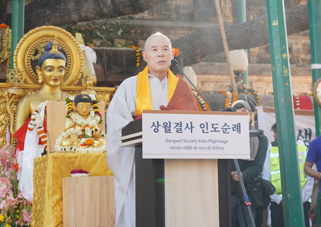 조계종 총무원장 진우 스님도 인사말을 통해 회주 자승 스님의 마음을 이어받았다. 진우 스님은 “부처님 나라이기에 마음의 고향으로 여겨왔지만 막상 낯선 환경인 이곳에서 순례단은 온갖 난관을 넘어 원력으로 부처님 성도지까지 이르렀다. 이는 전대미문의 구도행”이라며 순례단을 먼저 치하했다.