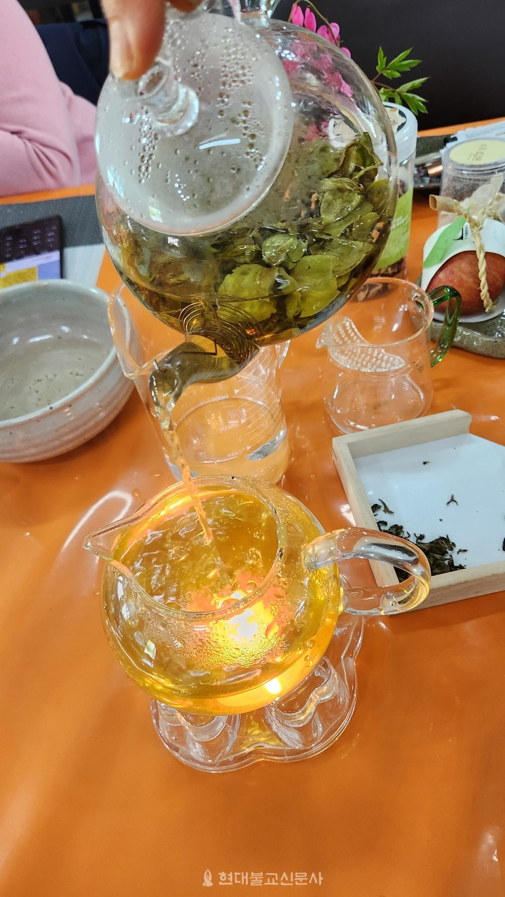 다른 태음인 시음자는 우림하기 전에는 시원한 풀 말린 향과 동시에 꿀향이 나고, 생것의 달달한 아까시꽃의 향은 찾을 수 없었다. 1차 시음에서는 아까시 풀향이 나면서 단맛이 났다. 2차 시음에서는 부드러운 향과 맛이다.