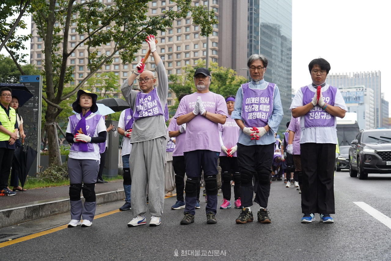 10.29 이태원 참사 유가족협의회와 시민대책회의는 이날 서울시청광장 분향소에서 특별법 제정 촉구 기자회견을 열고, 4대 종교와 함께 삼보일배에 나섰다. 종교계에서는 조계종 사회노동위원회를 비롯해 천주교남녀수도회 정의평화환경위원회, 원불교시민사회네트워크, ‘10.29 이태원 참사를 기억하고 행동하는 그리스도인모임’이 연대했다.