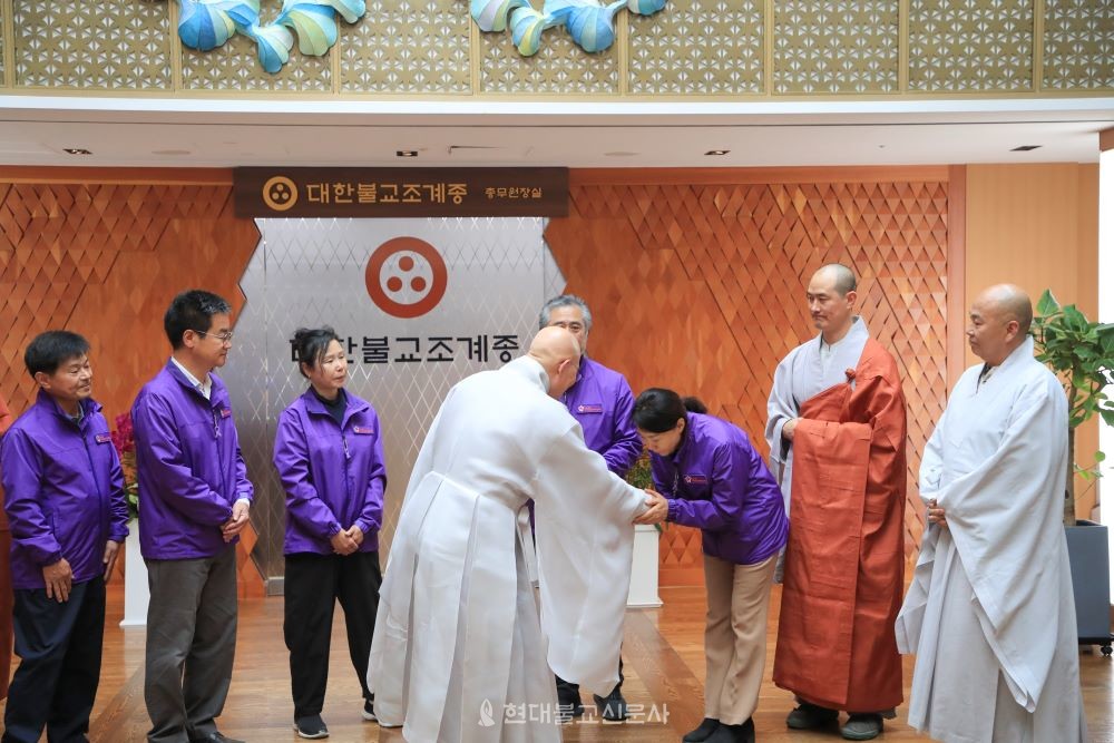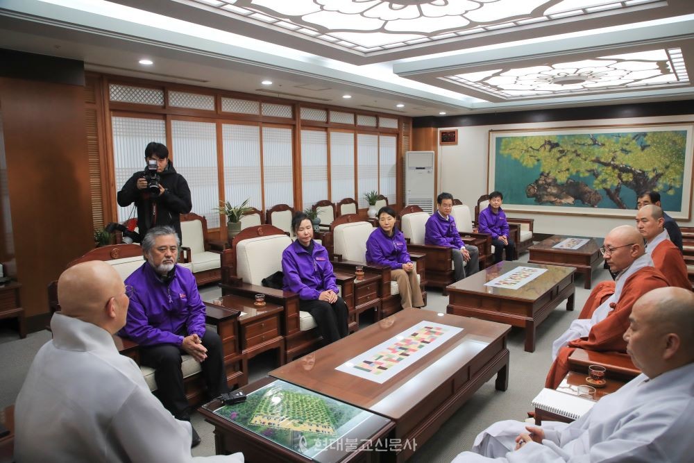 10.29이태원 참사 유가족협의회는 10월 26일 서울 한국불교역사문화기념관 4층 접견실에서 조계종 총무원장 진우 스님을 예방하고 거듭 감사 인사를 전했다. 이 자리에는 이정민 10.29이태원 참사 유가족협의회 운영위원장(이주영 아버지), 송후봉(송은지 아버지), 이성환(이상은 아버지), 김호경(김의현 어머니), 김화숙(김현수 어머니)씨가 참석했다. 사회부장 도심 스님, 사회노동위원회 위원장 지몽 스님, 부위원장 고금 스님, 양한웅 집행위원장도 배석했다.
