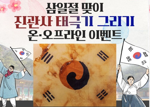 서울 은평구는 2월 29일 오후 2시부터 독립운동가의 공훈을 기리고 독립정신을 널리 알리고자 ‘진관사 태극기 그리기 온·오프라인’ 행사를 개최한다.