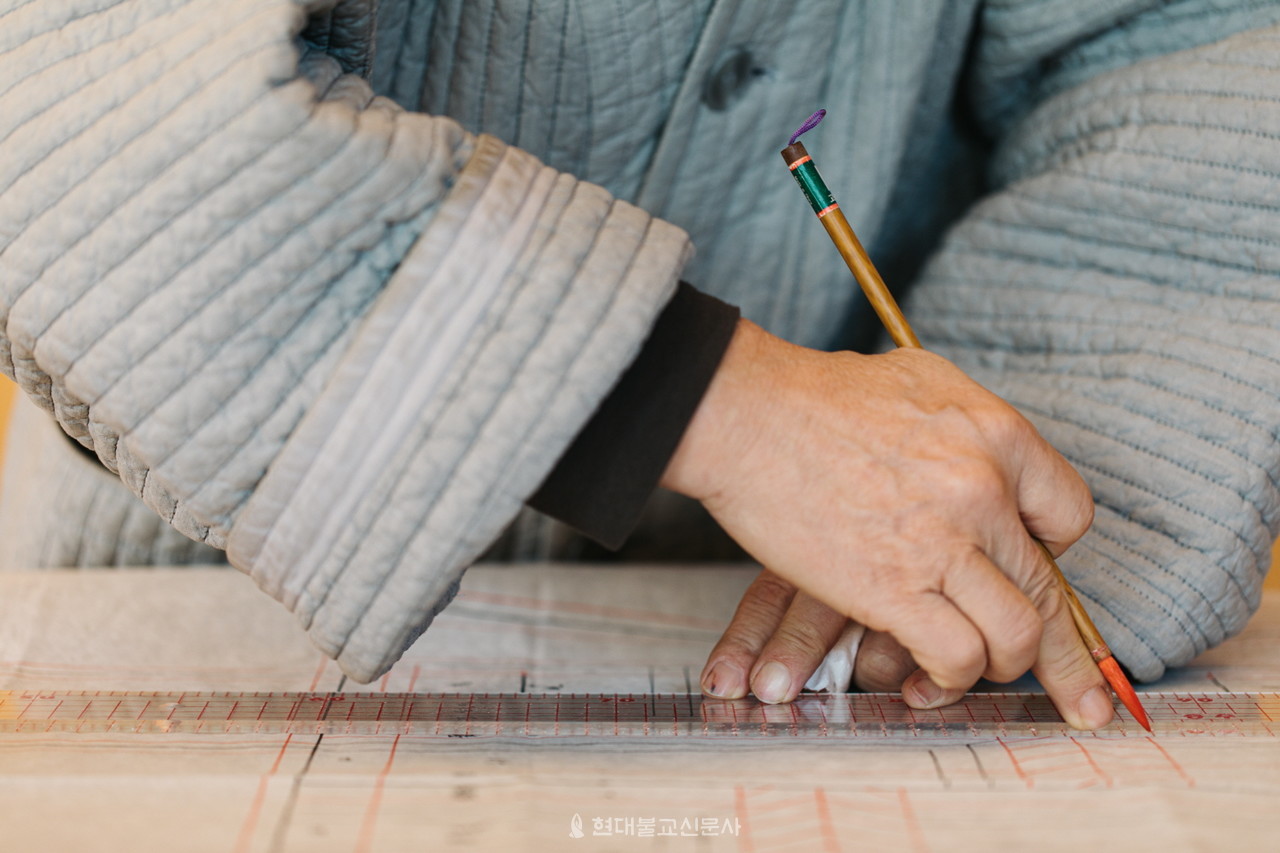 25조 대가사에만 300개가 넘는 통문이 있다. 세심하게 통문을 확인하다 막힌 부분이 발견되면 고치느라 또 시간을 보내야 한다. 가사 짓는 일이 선방의 용맹정진처럼 결코 만만치 않다는 말이 허언이 아니란 걸 눈으로 본 뒤에야 이해할 수 있었다.