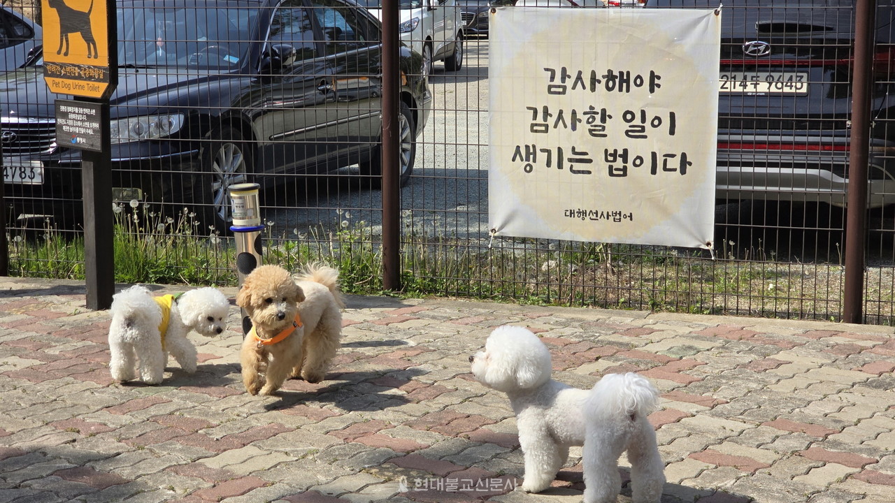 “요즘에는 송화가루가 많이 날릴 시기라 견주와 반려견들이 사찰 놀이터에 많이 오지는 않아요. 잘못하면 아이(반려견)들이 눈병이나 피부병 등이 생길 수 있거든요.”