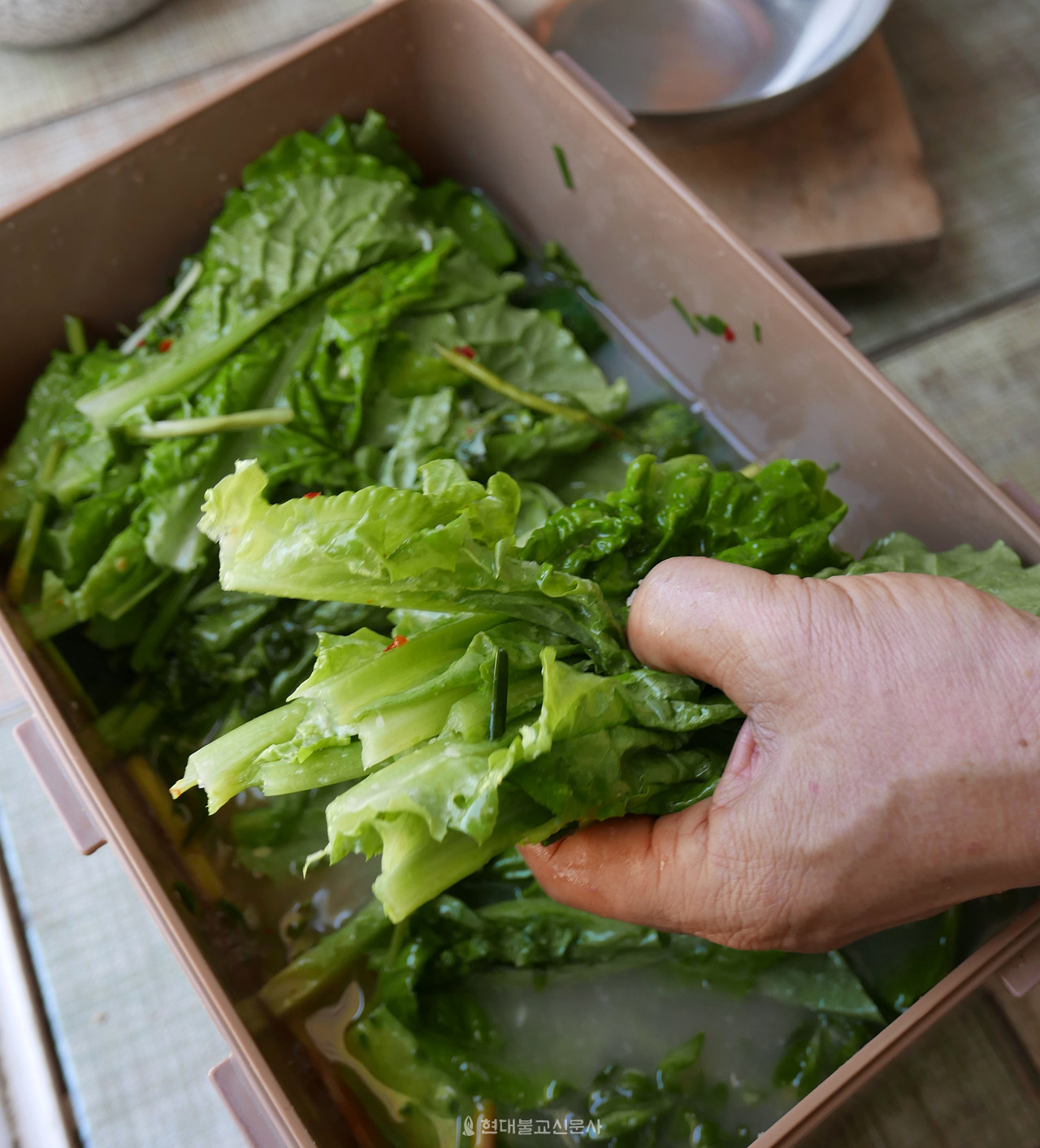 1. 상추를 깨끗이 세척한 후 용기에 차곡차곡 담는다.