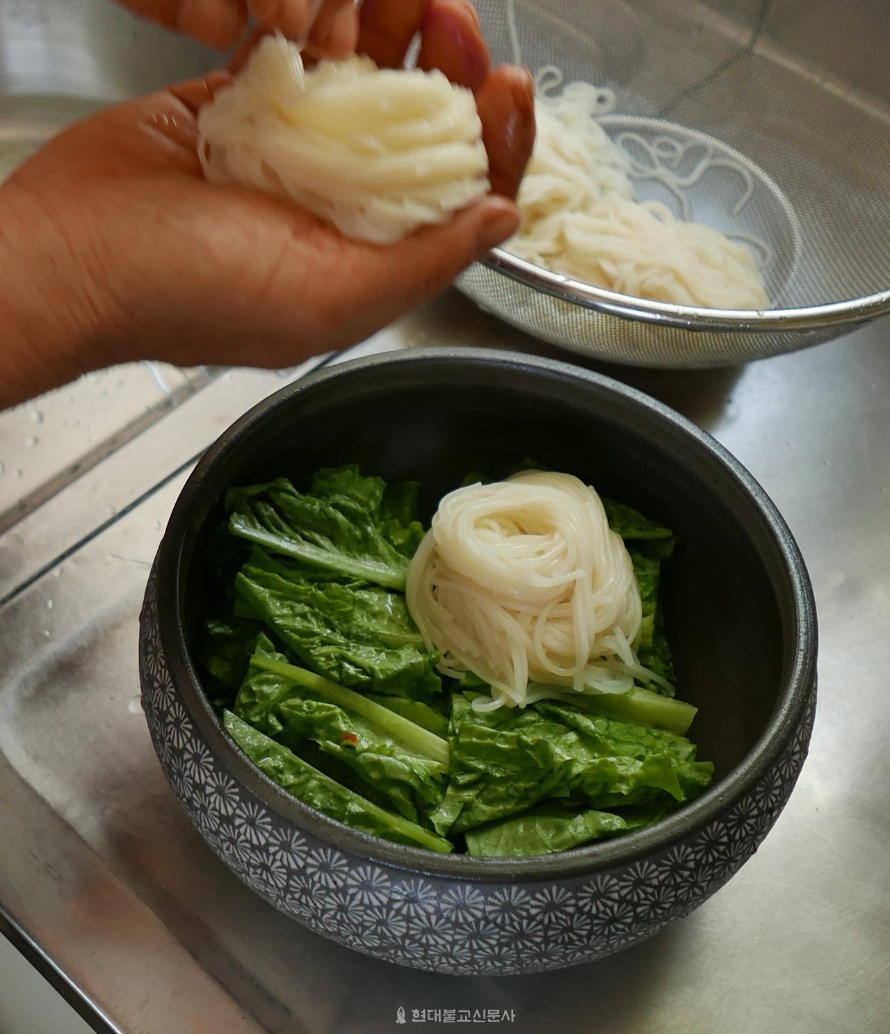 “은사스님께서 국수가 양이 많다 하실 때가 있어요. 크게 한 번에 담지 않고, 조금씩 나누어 담으면 원하는 만큼 적당히 덜어 드시기에 편합니다.”