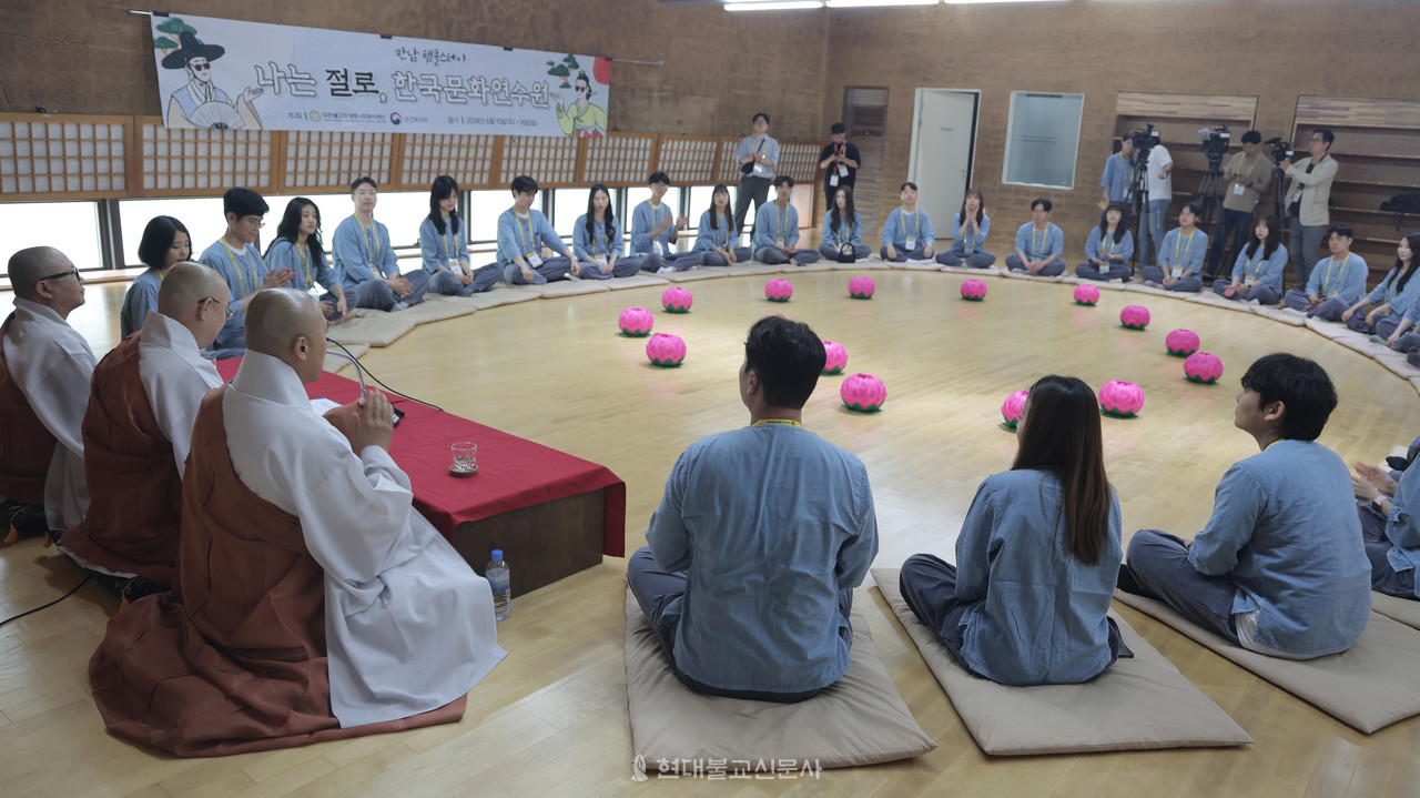 한국문화연수원 본부장 금오 스님은 “한국문화연수원은 여러분들의 마음에 있는 열애심을 활활 불사를 수 있게 다양한 프로그램을 준비하고 있다. 매 순간을 불사르자!”라는 환영사로 맞이했다.
