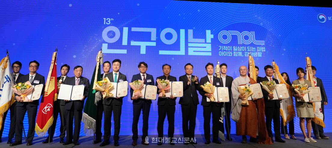 조계종사회복지재단(대표이사 묘장 스님)은 7월 11일 서울 웨스틴 조선호텔 그랜드볼룸에서 열린 ‘제13회 인구의날 기념식’에서 대통령 표창을 수상했다. 이번 표창은 ‘나는 절로’가 국가 사회적 이슈로 떠오른 저출산 문제 해결에 기여하고 대중들의 인식개선에 큰 도움을 준 것으로 판단한 정부에서 직접 시상했다는 점에서 큰 의미가 크다.