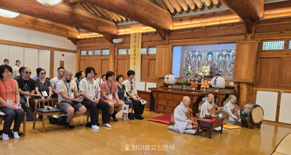 이어 후손들은 한문화체험관 3층 명상실에서 지도스님의 설명에 따라 명상하며 불교문화를 체험했다. 1층 흙다움에서는 진관사가 준비한 전통차를 마시며 고국의 전통문화를 이해하는 시간도 가졌다.