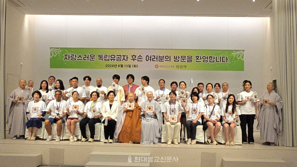 또한 진관사는 “조국 독립을 위해 먼 이국땅으로 떠난 숭고한 희생정신을 잊지 않겠다”고 감사를 전하며 진관사 태극기가 새겨진 티셔츠를 선물했다.
