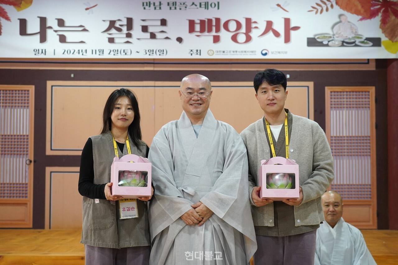 백양사 주지 무공 스님은 성사된 7쌍의 커플들을 축하하며 ‘현커(현실커플) 기원 금일봉’을 전달했다. 무공 스님은 “선남선녀들이 좋은 인연을 맺는 자리를 백양사에서 개최하게 돼 기쁘고 영광스럽다”면서 “이어졌든, 이어지지 못했든, 지금과 미래의 인연 모두를 소중하게 여기고 길게 이어가길 바란다”고 축원했다.