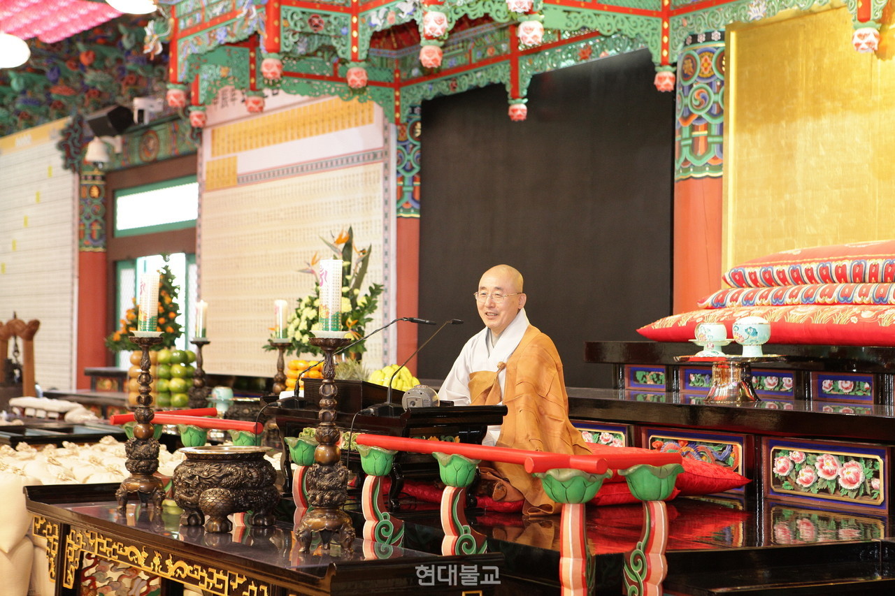 이날 우진 스님은 오전 입재 법문에 이어 오후 법회에서는 ‘화엄경 현수품’을 대중과 함께 독송 정진했다.