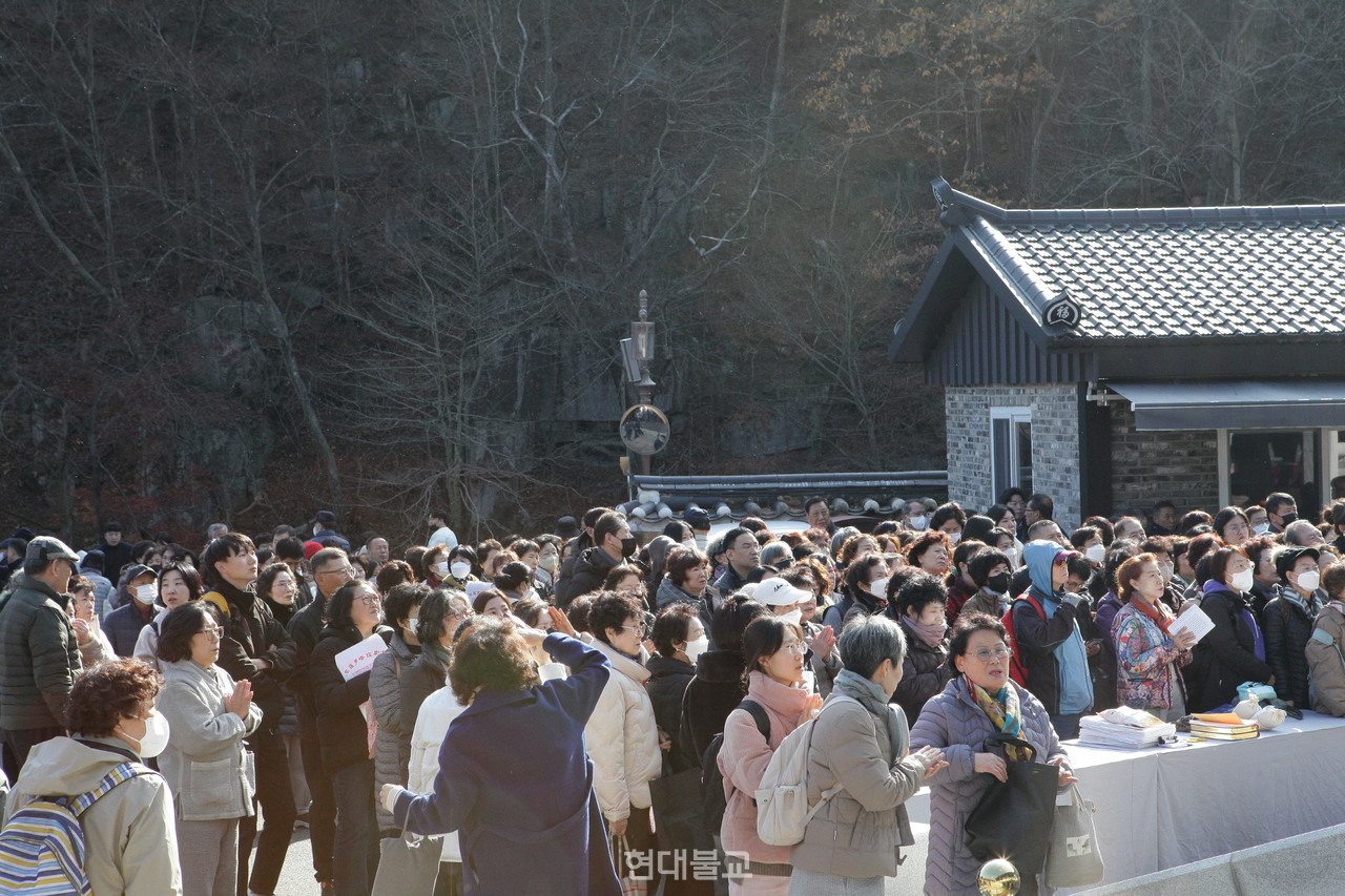 이날 통도사 경내는 산문부터 도량까지 차량이 줄을 이었고, 불자들은 설법전과 앞마당 까지 빼곡히 자리를 잡고 기도했다. 매년 열리는 통도사 화엄산림대법회는 전국의 불자들이 참여하는 화엄법회로 30일 동안 이어지는 대장정이다. 이 기간동안 불자들은 통도사에서 매일 기도하며 법문을 듣고 인연 영가의 극락왕생을 기도한다. 또한 전국의 대강백 스님 30여 명이 법사로 참여해 다양한 해설과 화엄경의 도리를 전해 매회 새로운 지혜를 얻고 있다. 불자들의 수행정신을 독려하기 위해 통도사는 30회와 25회 등 연이어 참석한 불자들에게 성만패와 기념 메달을 전달하고 있다.