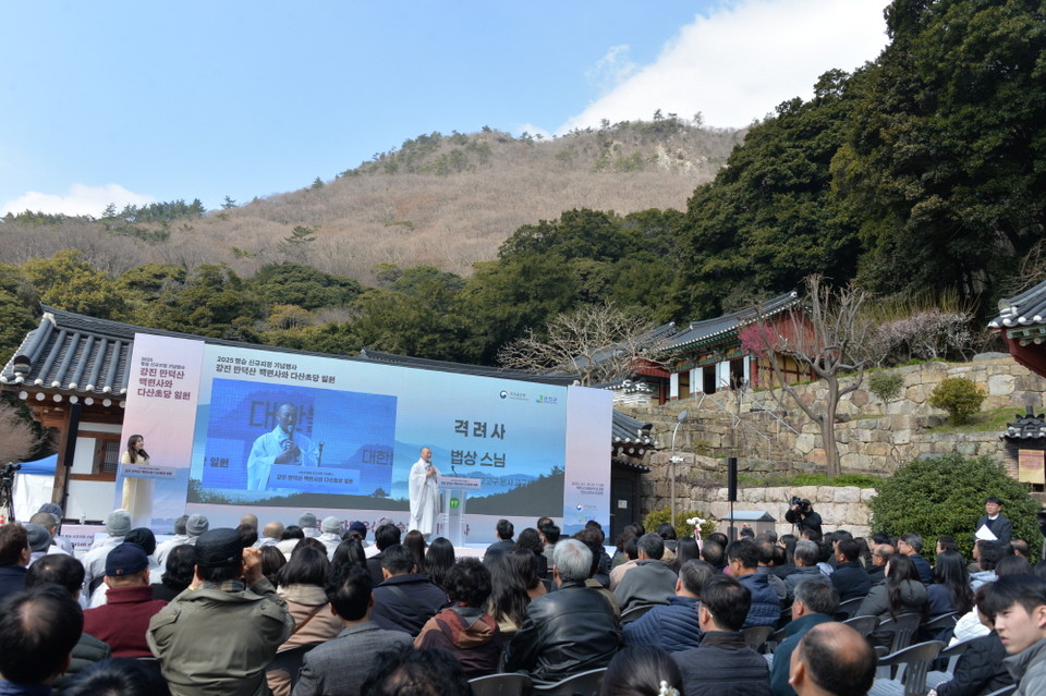 강진 백련사(주지 설도 스님)는 3월 19일 경내에서 국가유산청(청장 최응천)과 강진군(군수 강진원)의 주관으로 ‘강진 만덕산 백련사와 다산초당 일원’ 자연유산 명승지 지정 기념행사를 개최했다.