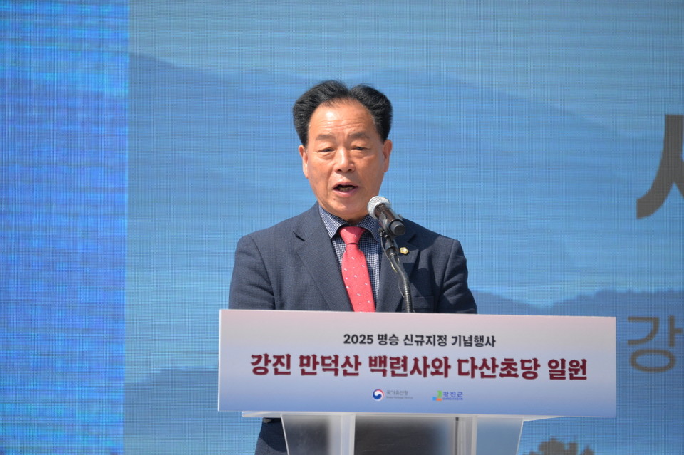최보근 국가유산청 차장은 기념사에서 “‘강진 만덕산 백련사와 다산초당 일원’은 아름다운 경관과 역사적 이야기를 함께 품고 있는 소중한 자산”이라며 “국내를 넘어 세계적 명소로 자리매김할 수 있도록 경관 개선과 보수 정비 사업을 적극 지원하겠다”고 밝혔다.
