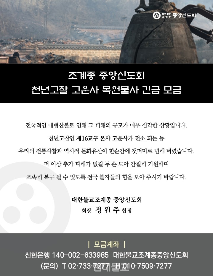 (모금계좌 신한은행 140-002-633985 조계종중앙신도회)