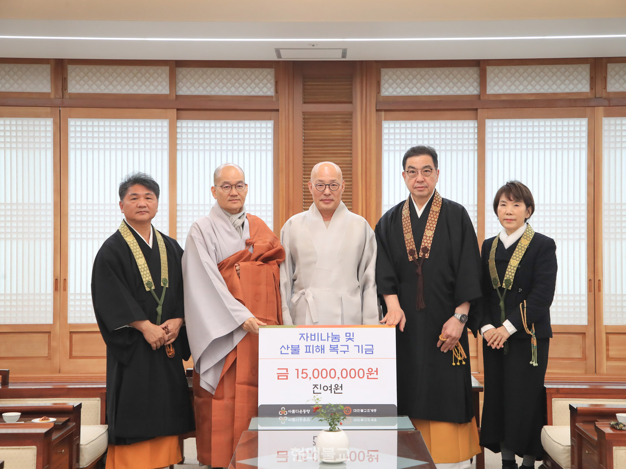 마츠나가 아츠시 국제원장은 자비나눔 기금 1000만원, 산불피해 및 문화유산 복구 지원 기금 500만원 등 총 1500만원을 전달했다.