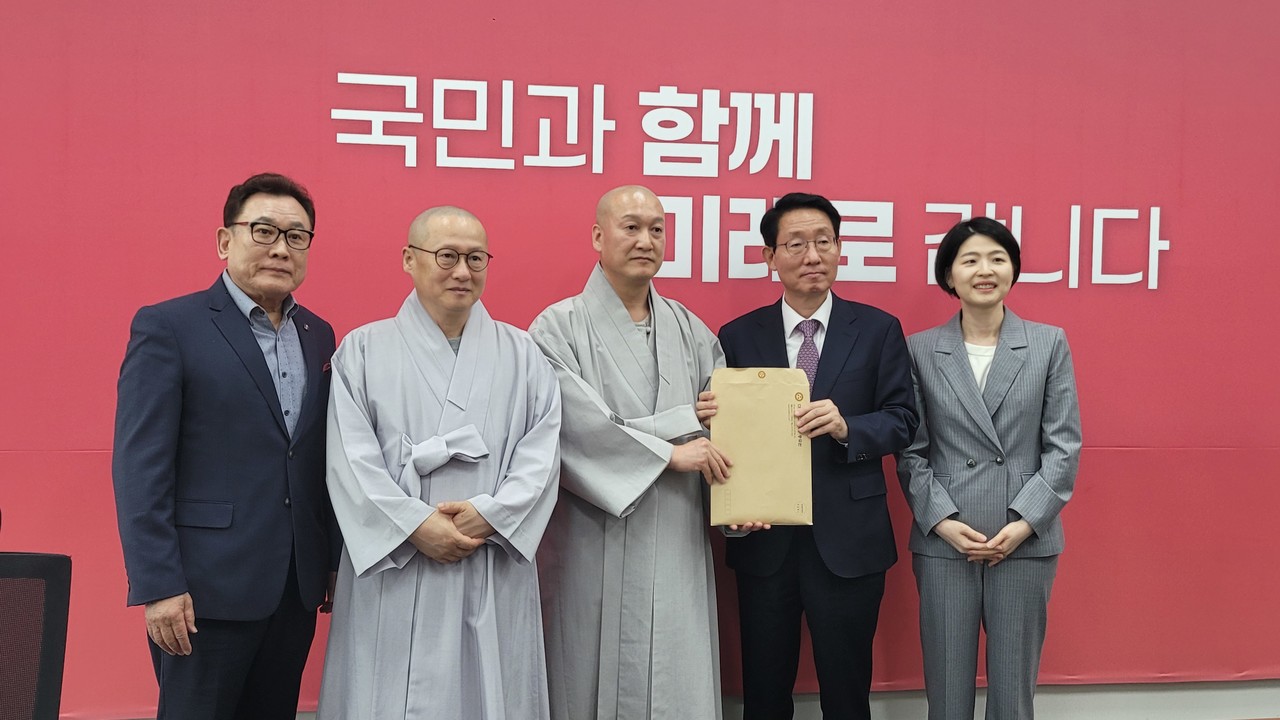 조계종은 이어 개혁신당 캠프를 방문, 이주영 개혁신당 정책위원회 의장에게 정책 자료집을 전달하고 대선 공약에 적극 반영되도록 요청했다.