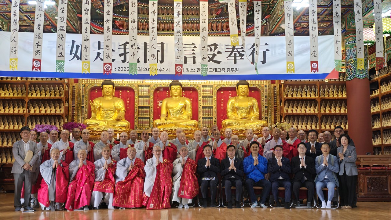태고종 총무원은 5월 26일 서울 한국불교전통문화전승관 법륜사 대불보전에서 ‘종단 운영과 관련된 통합종책회의’를 개최했다. 이날 1부 회의에서는 이재명 후보 측의 김민석 상임선거대책위원장과 김영배·위성곤·이수진·곽상언·김동아·김상욱·박희승 등 선대위 불교본부가 함께 한 간담회가 진행됐다. 태고종에서는 총무원장 상진 스님을 비롯해 중앙종회의장 시각 스님, 호법원장 구산 스님, 교육원장 구산 스님, 행정부원장 능해 스님, 전국종무원장협의회장 지허 스님과 지역종무원장 등이 대거 참석했다.