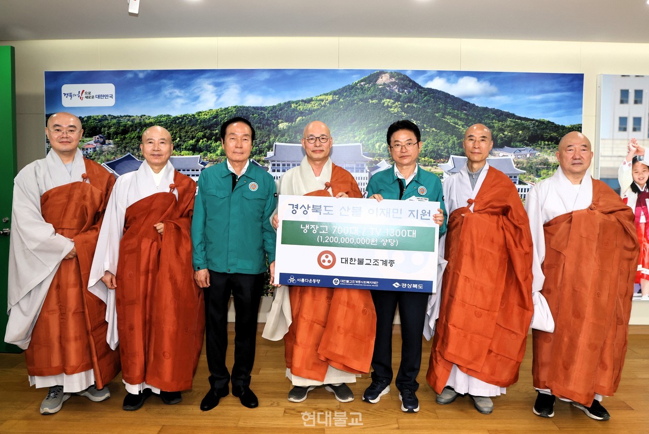 이날 전달된 가전제품은 12억원 상당으로 조계종이 모연한 금액 중 일부로 마련됐다. 물품은 안동과 의성, 청송, 영덕 등 4개 시·군의 산불 피해 지역 이재민 2000가구에 지원될 예정이다. 이재민의 대부분은 현재 영남지역 미분양 아파트에 임시 거주 중이다. 조계종은 이재민 내용을 면밀하게 파악해 꾸준한 지원을 이어간다는 계획이다.