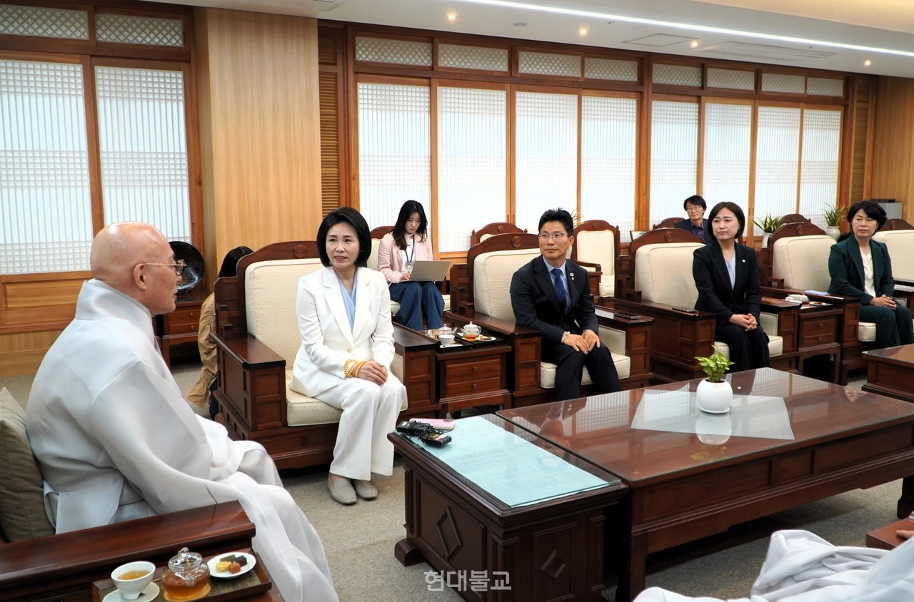진우 스님은 6월 2일 서울 한국불교역사문화기념관 4층 접견실에서 김혜경 여사에게 “그동안 여러 가지 힘든일이 많았을텐데 잘 극복했다”면서 “바람이 좋은 결과로 이어지길 바란다”고 격려했다.