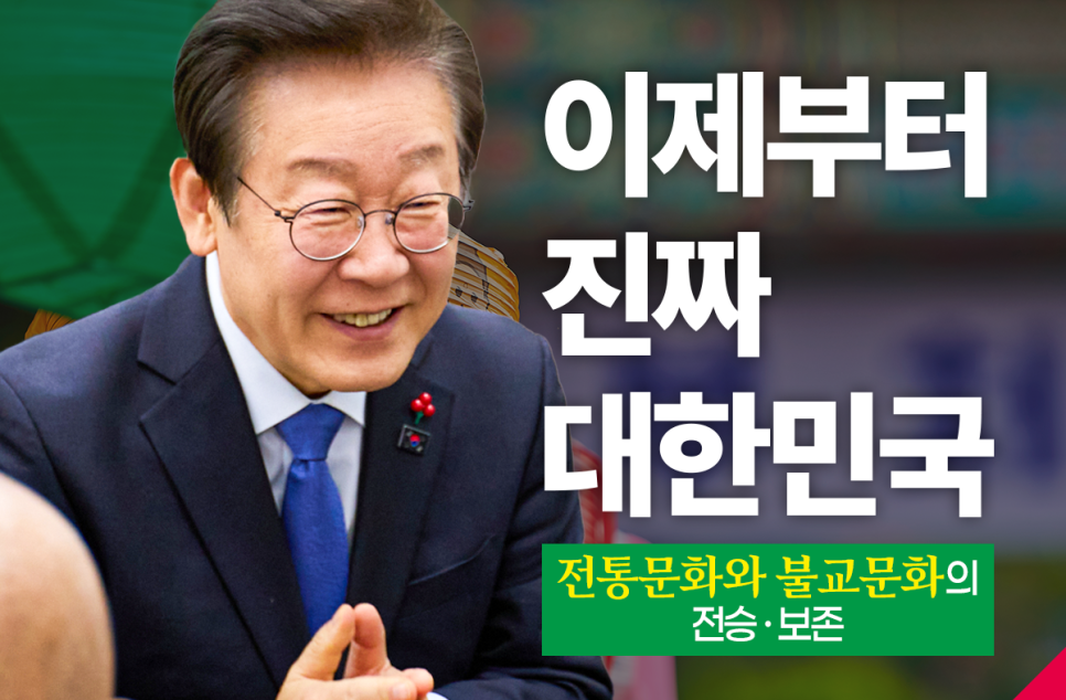 지난 5월 5일 부처님오신날을 맞아 이재명 당시 더불어민주당 대선 후보가 발표한 불교계 정책 공약의 슬로건이다. 이번 선거에서 이 후보는 여느 후보보다 빠르게 불교 정책 공약을 마련해 발표해 눈길을 끌었다.